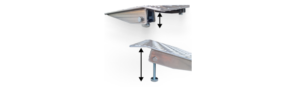 Ideale per muoversi comodamente su sedie a rotelle, scooter, carriole, ecc. ecc. Una costruzione semplice e resistente in alluminio anodizzato che non arrugginisce. Facile da rimuovere se necessario. La superficie antiscivolo della rampa garantisce la sicurezza degli utenti.