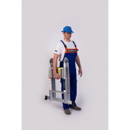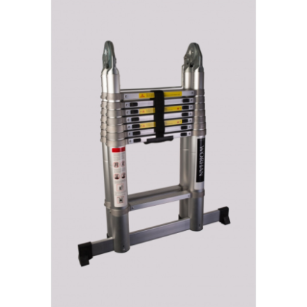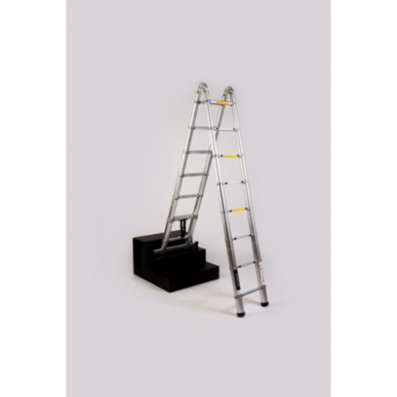 Altezza: 560cm., Altezza in posizione scaletta: 270cm., Gradini: 2x9., Dimensioni chiuso: 97cm x 49cm x 20cm., Peso: 21.8kg.