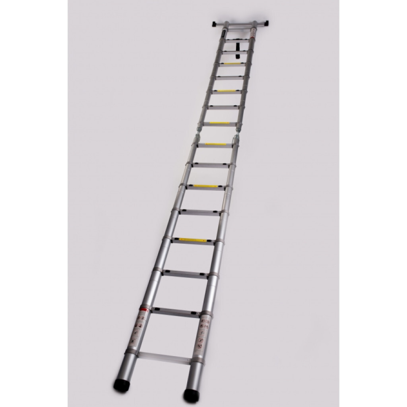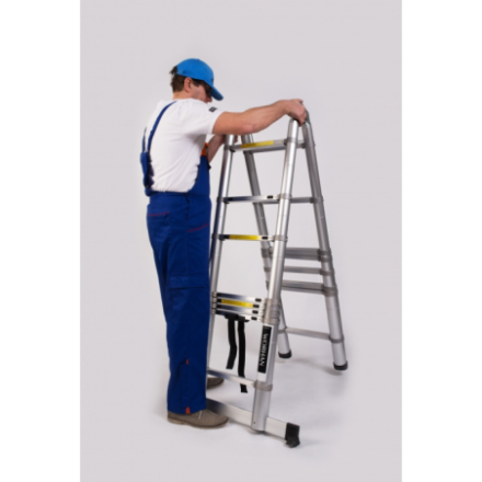 Prodotto rigorosamente secondo gli standard di sicurezza EN131., Materiali: alluminio anodizzato Peso massimo: 150 kg., Gradini speciali antiscivolo a coste.