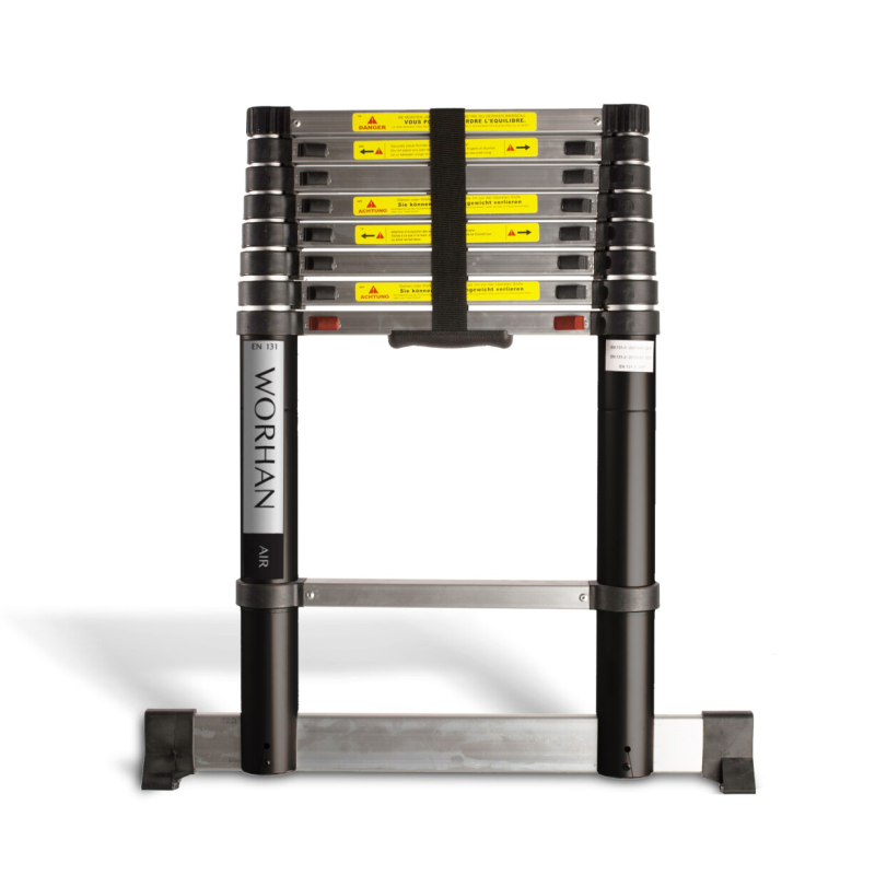 Découvrez l'échelle télescopique la plus sophistiquée à ce jour - le modèle Air Soft Close est l'échelle haut de gamme fabriquée par Worhan., Avec une simple pression de 2 boutons, l'échelle se replie lentement et doucement toute seule., Échelles de la plus haute qualité sur le marché avec la fonction Air Soft Close ajoutée.