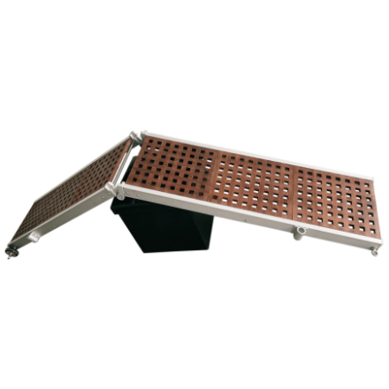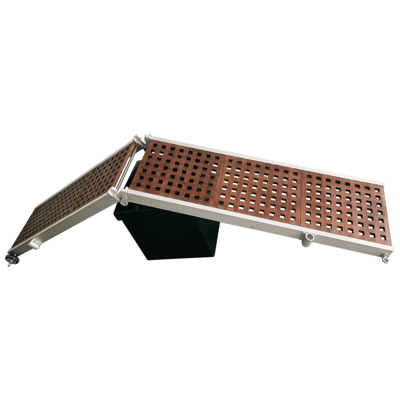 Passerella in alluminio, molto leggera e facile da usare. Superficie in legno di teak antiscivolo. Costruzione resistente all'acqua di mare.